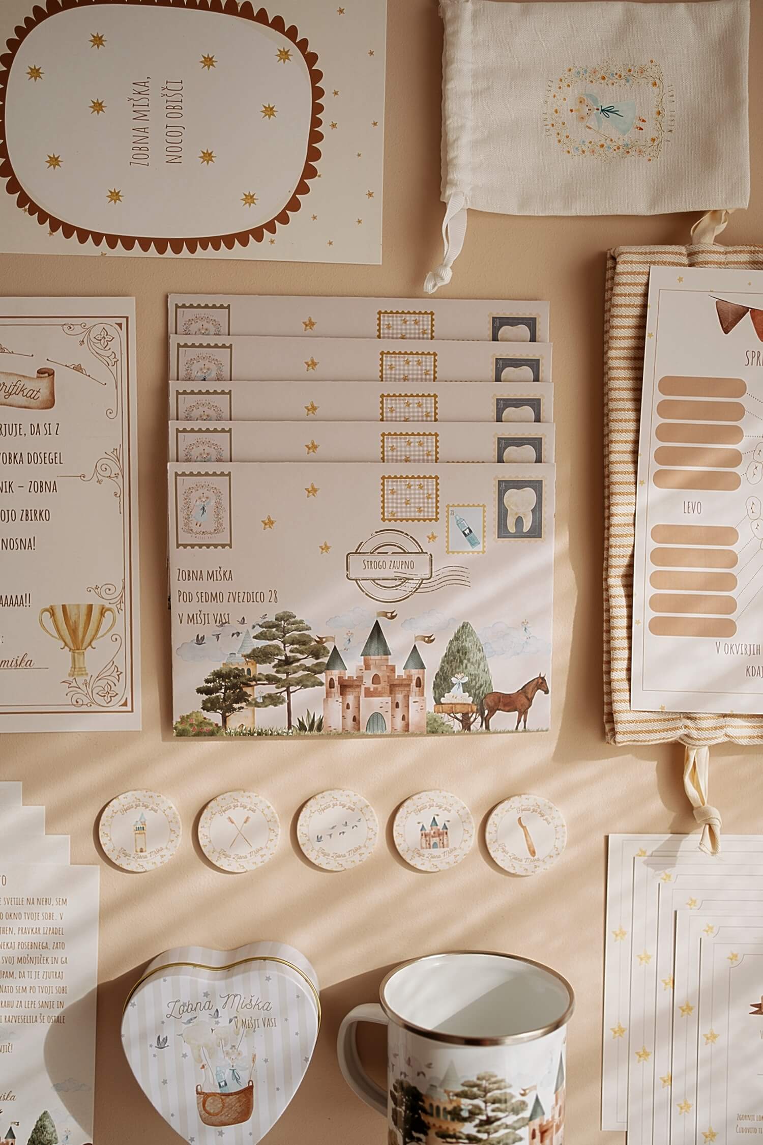 dovolj materiala za več obiskov Zobne miške – vedno pripravljen, ko se pojavi nov zobek!